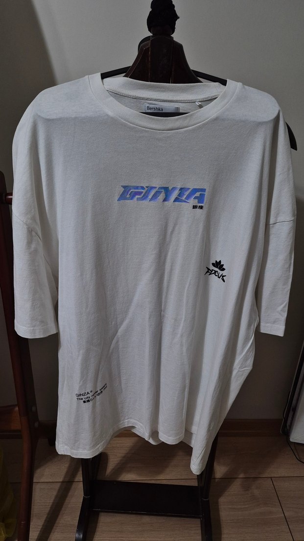 Pamuk kumaştan, kısa kollu, beyaz baskılı erkek tişört. Salaş kesimi ve yuvarlak yakasıyla spor ve rahat bir görünüm sunar. Günlük giyim için idealdir ürün sadece 1 kez giyilmiştir sınırlı üretim.