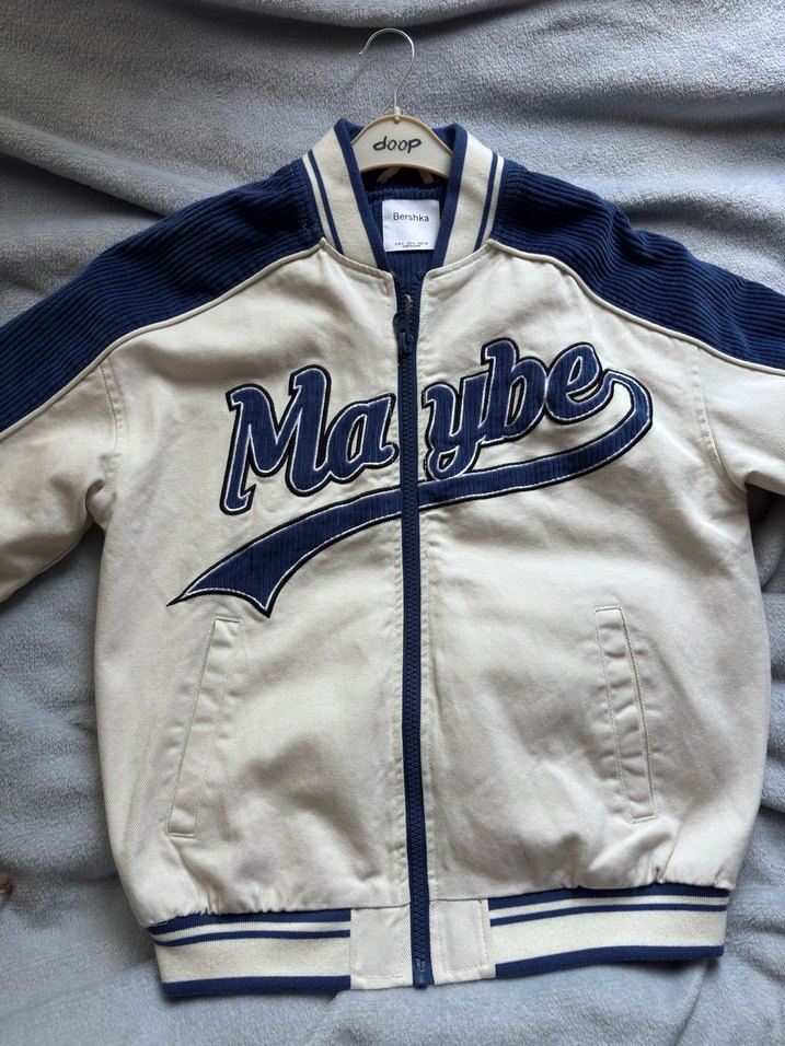 Beyaz baskılı, fermuarlı, uzun kollu ve notched lapel yakalı rahat kesim kadın ceket, günlük kullanıma uygundur. Çok az giydim