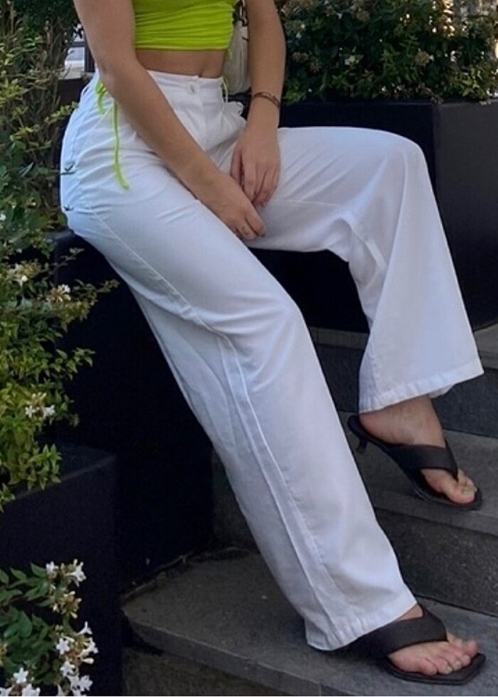 Bershka beyaz bol kesim yazlık keten karışımlı pant.