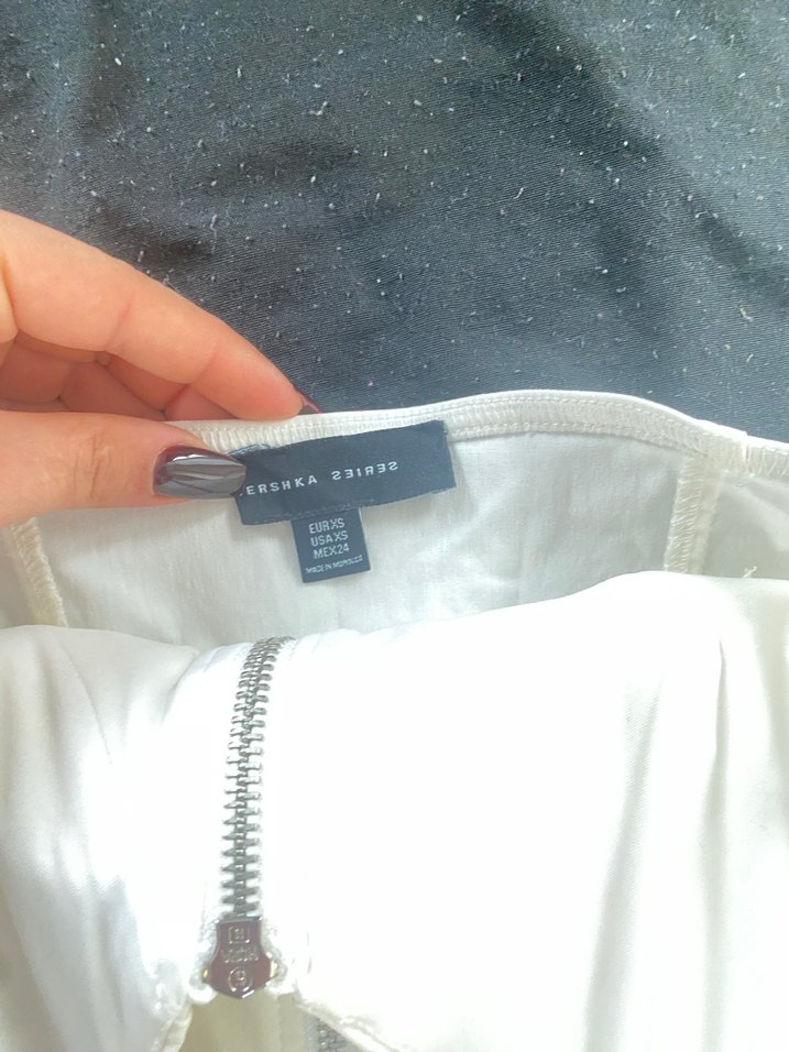 Nakışlı ve fermuarlı beyaz büstiyer.Nefes alabilen keten kumaştan, günlük rahat sokak stili için uygundur.
