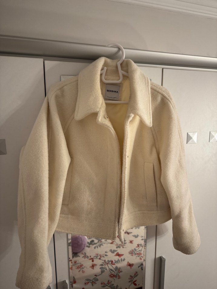 Bershka S Beden beyaz kaşe mont