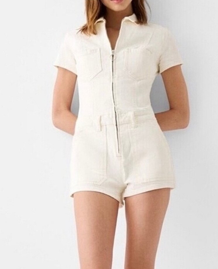 Bershka Beyaz Kısa Kollu Mini Tulum