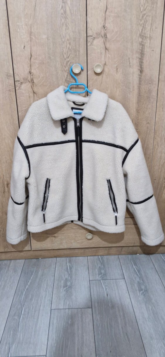 Yumuşak ve sıcak kumaşlı, kürklü detaylı, notched lapel yakalı kadın ceket. Uzun kollu, regular fit ve fermuarlı. Beyaz ve gri renklerde, rahat sokak stili için uygun. Eşime hediye aldım beğenmedi 1 kere gönlüm olsun diye denedi ama kullanılmadı.