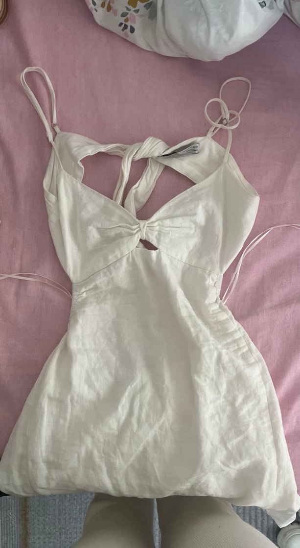 bershka Beyaz sirt dekolteli midi yirtmacli elbise