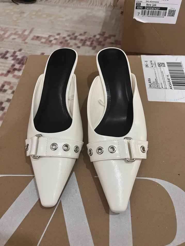 Bershka Beyaz Tokalı Stiletto Kadın Topuklu Ayakkabı