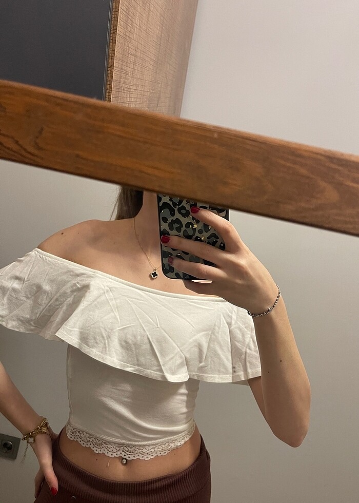 Xs beden bershka beyaz kayık yaka üst