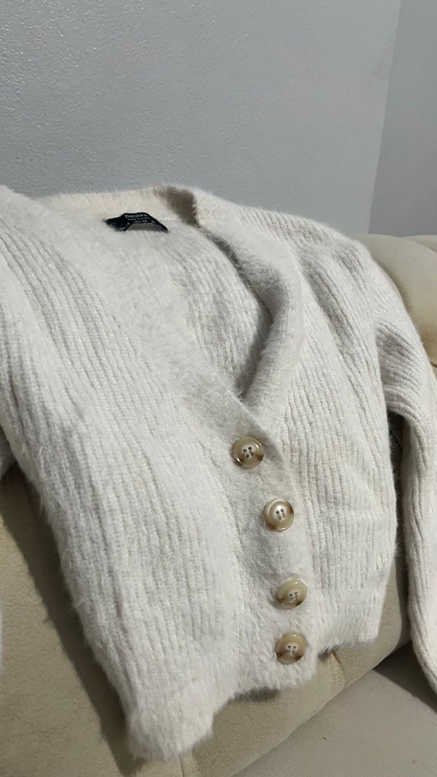 Bershka beyaz yün hırka bir kere bile giyinmedim yumuşacık kombinlere çok iyi uyuyor