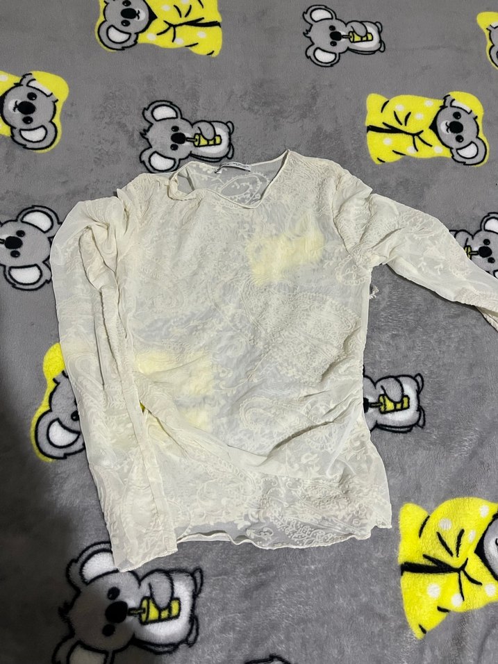 Uzun kollu, keten kumaştan, dantel detaylı bol kesim beyaz uzun kollu. Yuvarlak yaka ve beyaz-gri tonlarında batik desenlidir, günlük kullanıma uygundur.