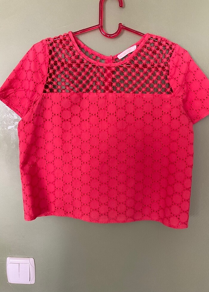 Arkası düğmeli, omuz kısmı transparan şık bir bluz