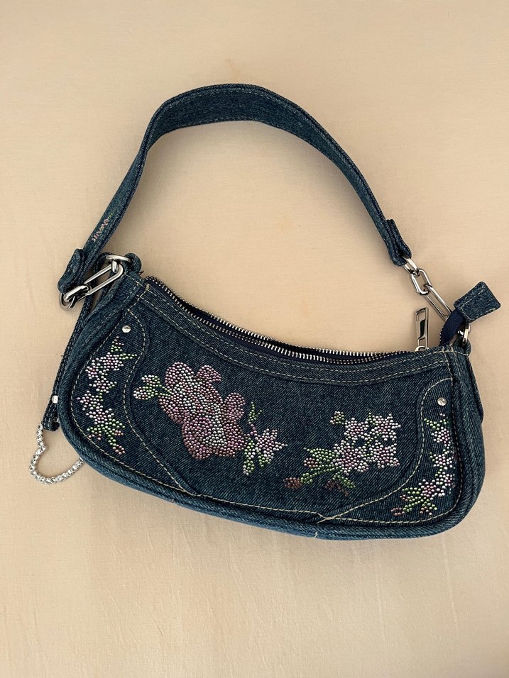 BERSHKA Boncuk İşlemeli Lacivert Denim Kadın Çanta