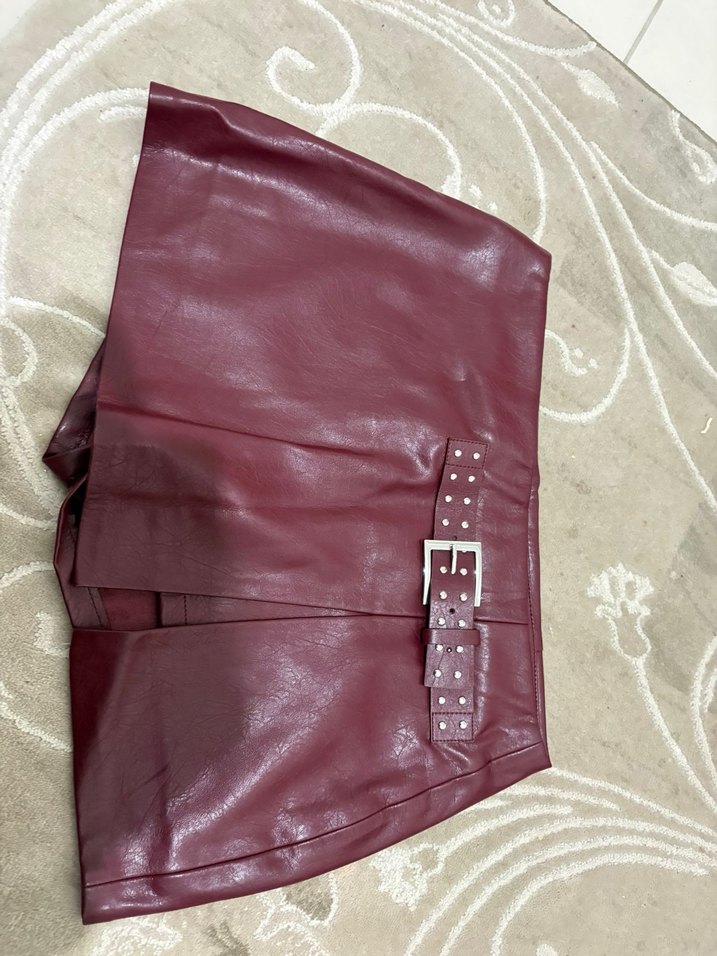 Bershka Bordo Deri Mini Şort etek