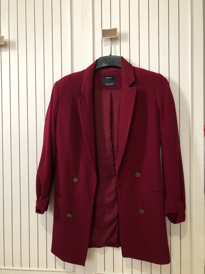 Bershka Bordo Kadın Düğmeli Blazer Ceket