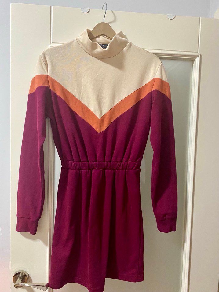 Bershka Bordo Renk bloklu sweatshirt Elbise. Sayılı giyildi. Sorunsuz. Pamuklu ürün.