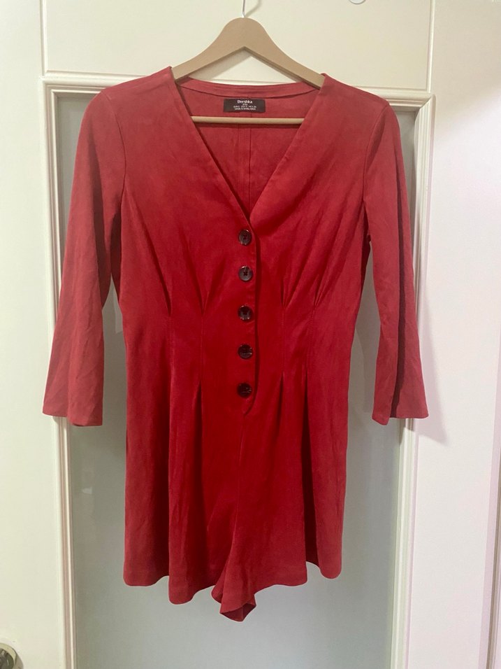 Bershka Bordo Süet V Yaka şort Tulum. 1 kere giyildi. Sıfırdan farksız. S beden.