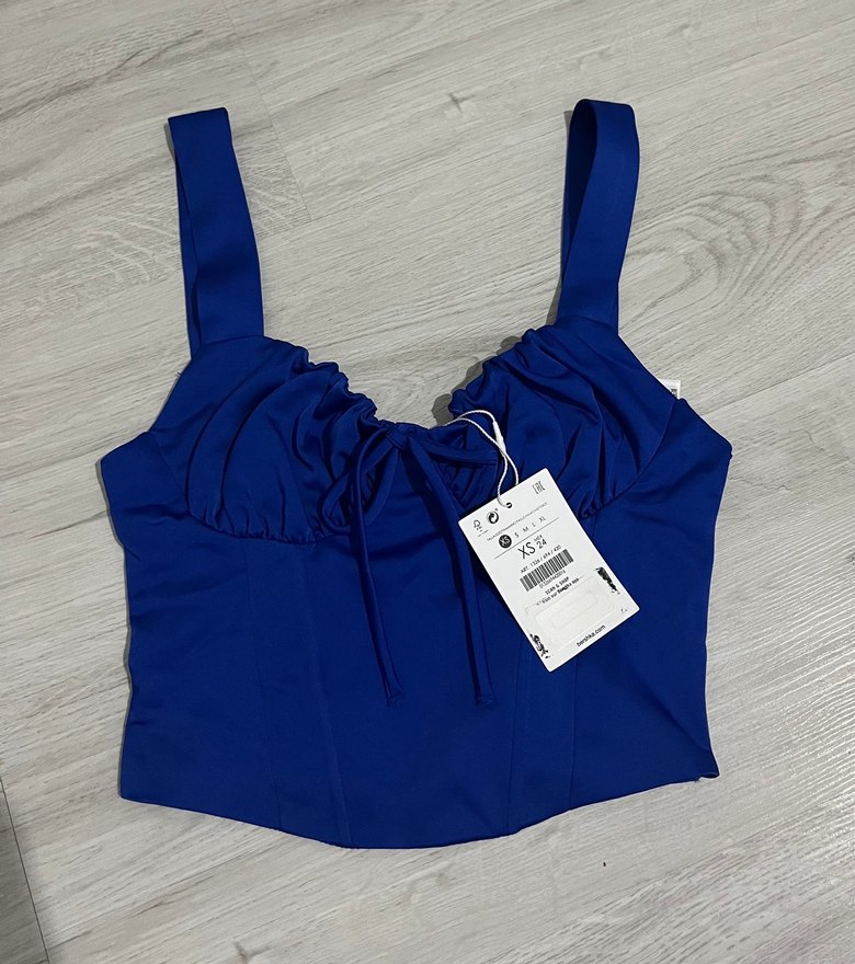 saks mavi saten formda bershka üst.Göğüs kısmı dar geldiği için rahat edemedim.İadesi geçtiği için satıyorum
