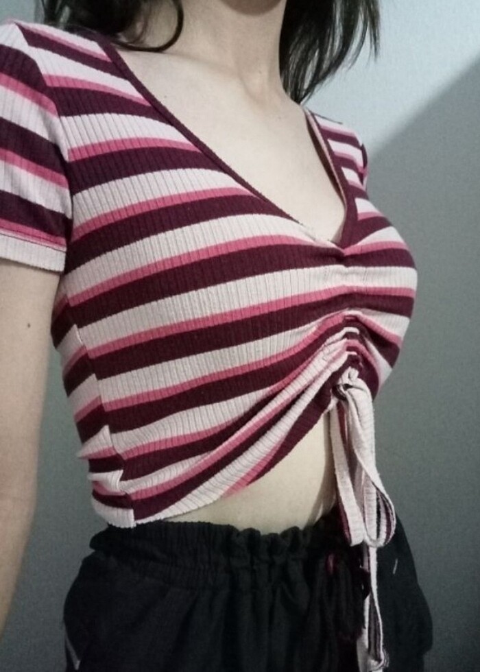standart beden ortası büzgülü ince crop yeni gibi