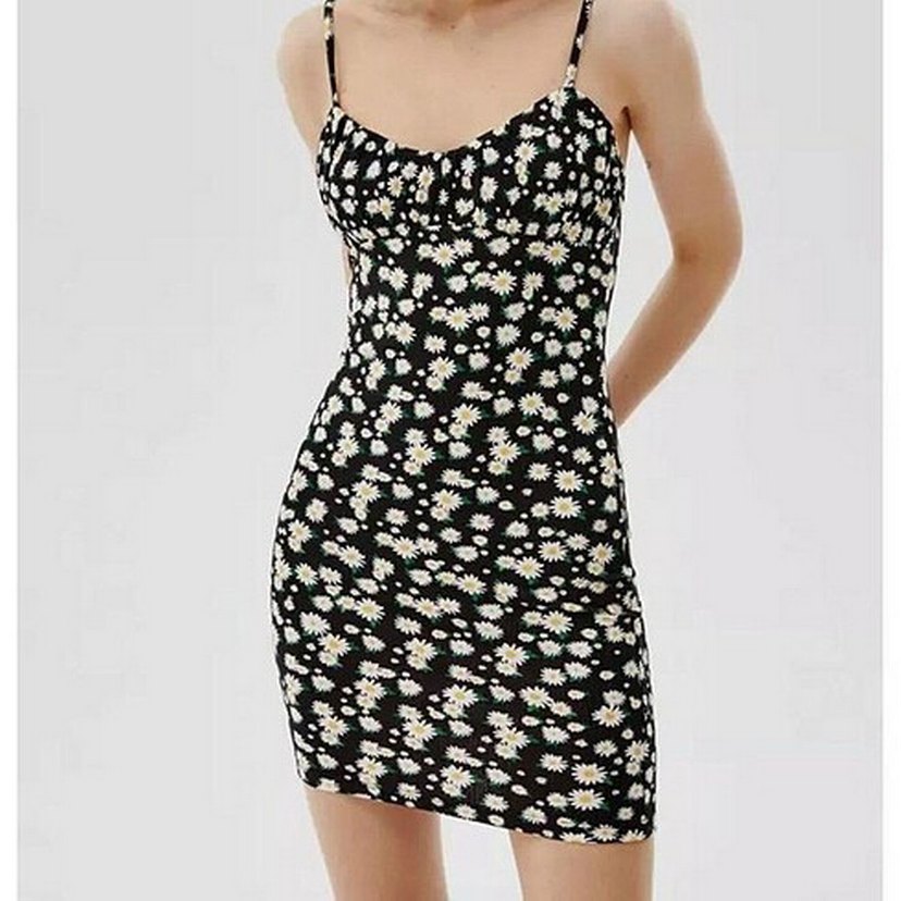 Bershka Çiçek Desenli İnce Askılı Mini Elbise