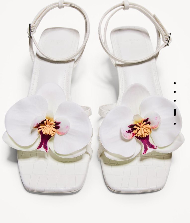 Bershka Çiçek Detaylı Beyaz Topuklu Sandalet