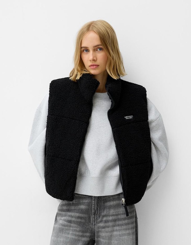 Bershka Çift taraflı suni yünlü yelek, sıfır ürün