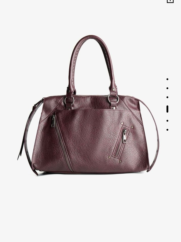 Bordo mürdüm arası deri çanta, fermuarlı detayları ve minimalist tasarımıyla günlük kullanıma uygundur. Modern ve desen içermeyen koyu renktedir. etiketli duruyor