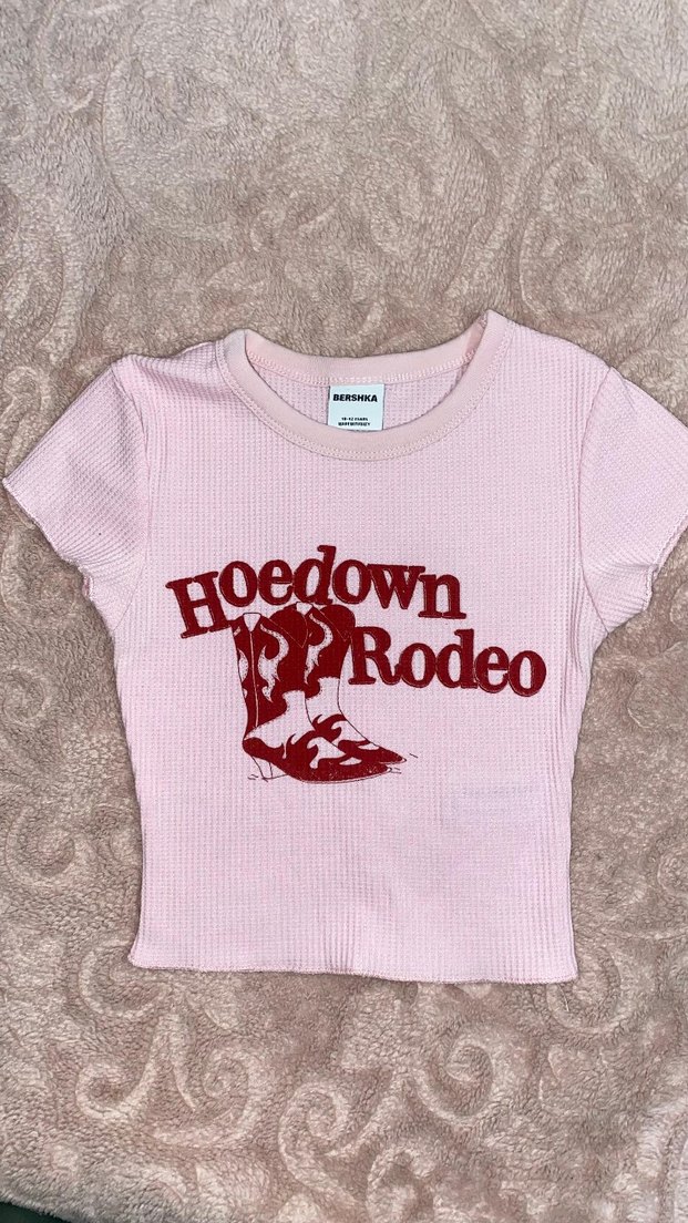 Sadece bir kez giyilmiş Bershka marka sıfır ayarında rodeo baskılı pembe crop 10-12 yaş hiçbir kusuru yoktur