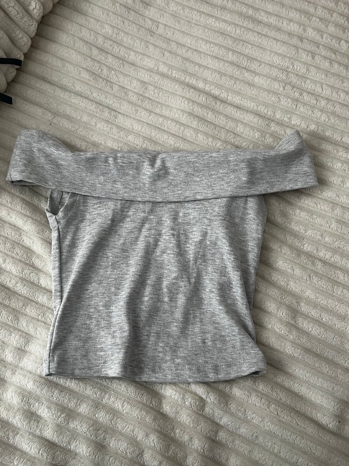 Gri renkli, kayık yakalı ve kısa kollu, vücuda oturan mini crop top. Yumuşak sentetik kumaştan, rahat ve şık sokak giyimi tarzında, dış mekan kullanımı için uygun.