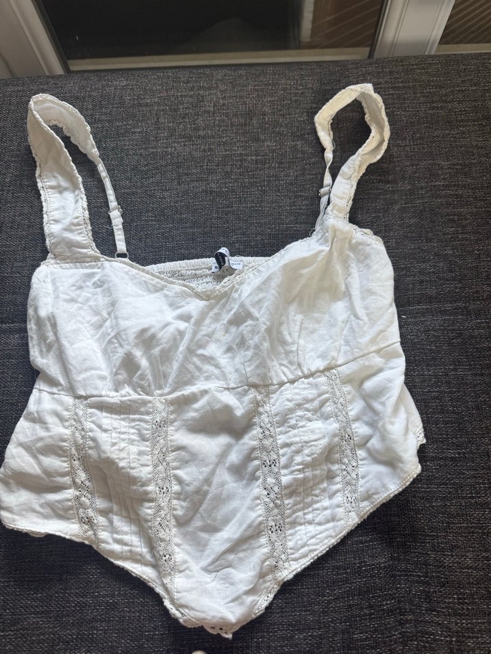 Bershka Dantel Detaylı Beyaz Keten Büstiyer