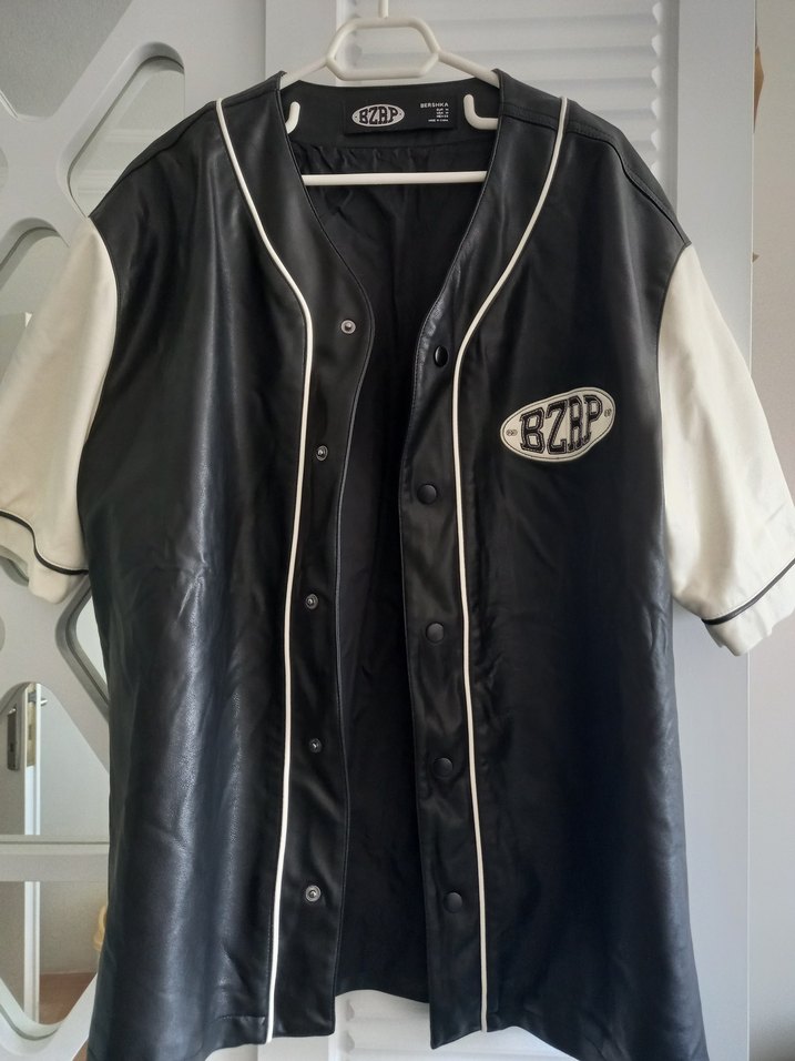 Bershka deri düğmeli oversize gömlek