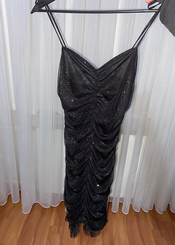 Mini bir elbisedir sadece 1 kere giydim yılbaşı için astarsızdır ama iç belli etmiyor doğru çamaşırla rahat bi şekilde giyiliyor