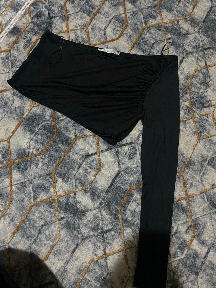 Bershka Drapeli Siyah Tek Kollu Uzun Üst