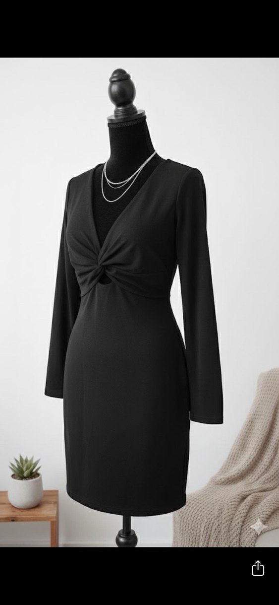 V yaka, uzun kollu ve drapeli detaylı siyah, klasik ve gotik tarzda oturan mini elbise, gece için uygun. 55 kiloyum bedenime uymadı