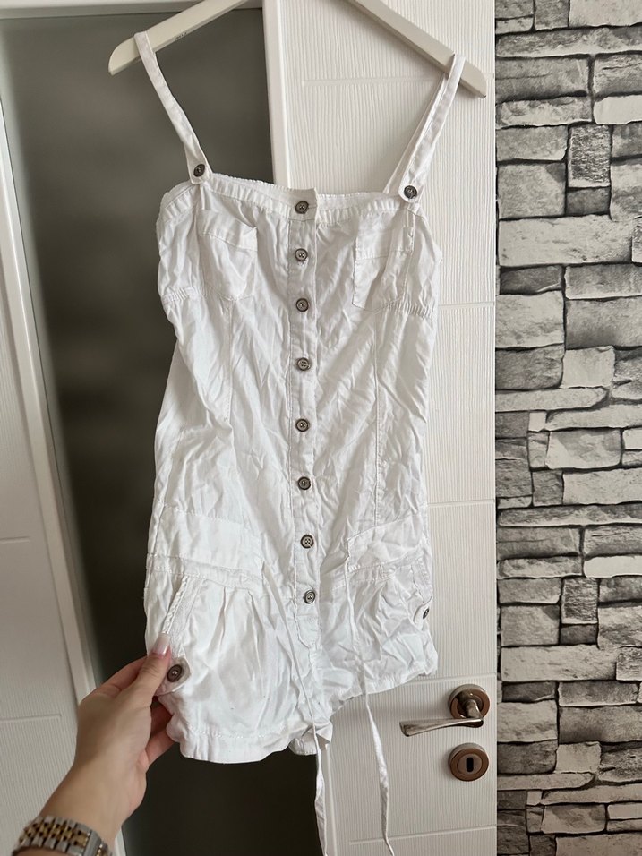 Bershka Düğmeli Beyaz Keten Mini Tulum