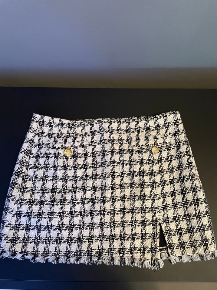 bershka markadir hiç kullanmadim etiketi uzerindedir sorunsuzdur ve kusursuzdur Düğmeli ve küçük ön yırtmaçlı beyaz siyah ekose mini etek, sentetik kumaştan ve regular fit.