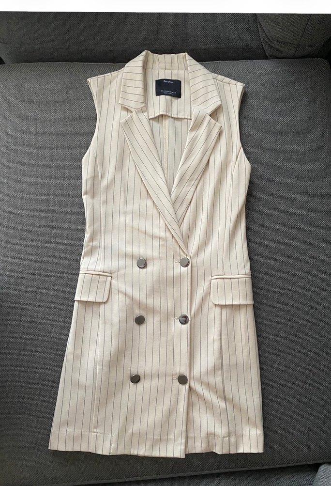 Bershka Düğmeli Çizgili Midi Kadın Yelek Elbise