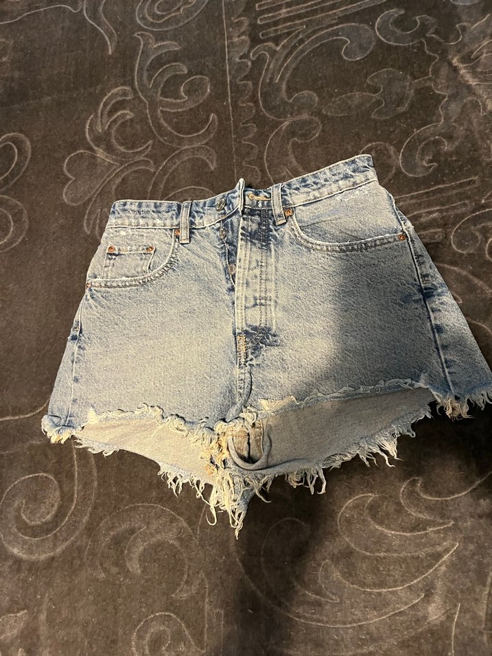 Bershka Düğmeli Gri Mavi Kadın Mini Kot Şort