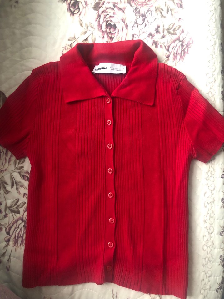 Bershka Düğmeli Kırmızı Polo Yaka Crop Top