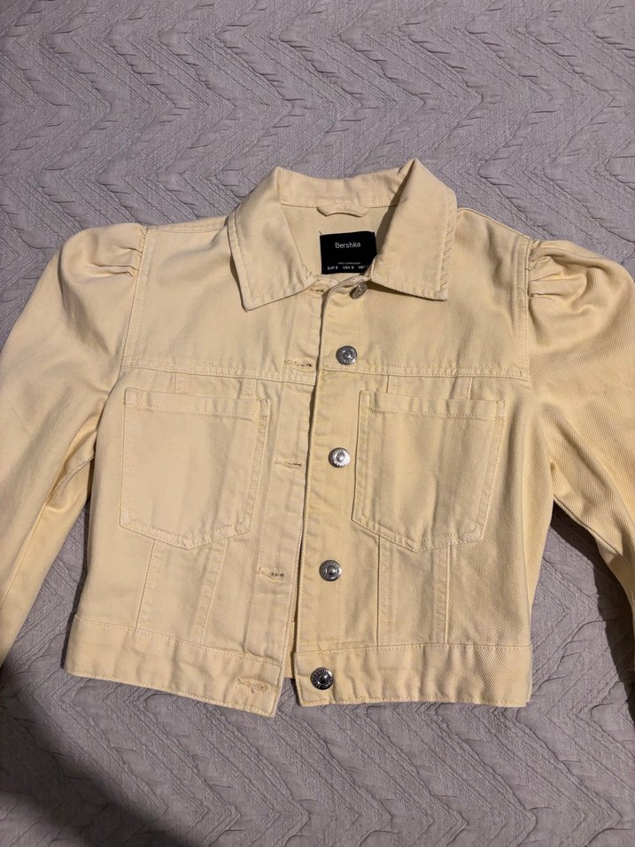 BERSHKA Düğmeli limon sarısı Kadın Denim Ceket