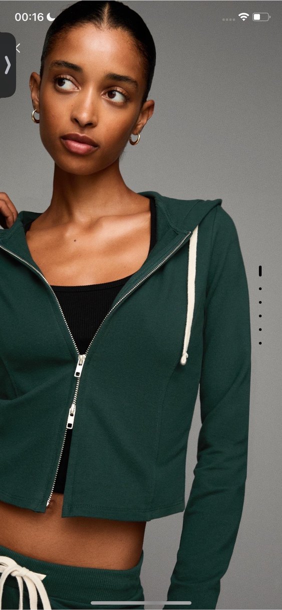 Fermuarlı önü ve V yakası ile fit kesim koyu yeşil sweatshirt. Uzun kollu, normal boyda, yumuşak ve sıcak kumaştan günlük kullanıma uygun.
