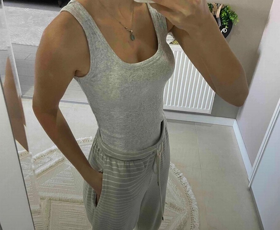 BERSHKA FİTİLLİ KOLSUZ T-SHİRT