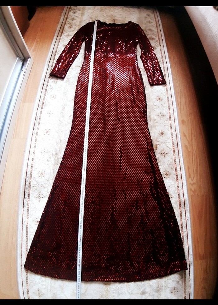 Payet dokulu Şıkk Gece Elbisesi. Balık Model. Hiçç Kullanılmadı. Marka Temsili.