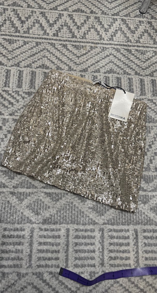 Bershka gold Renkli Mini Payetli şort Etek