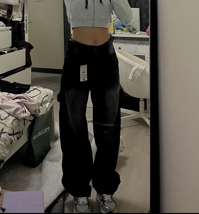Bershka gri baggy jean 36beden etiketi yok fotoğrafı duruşunu göstermek için koydum
