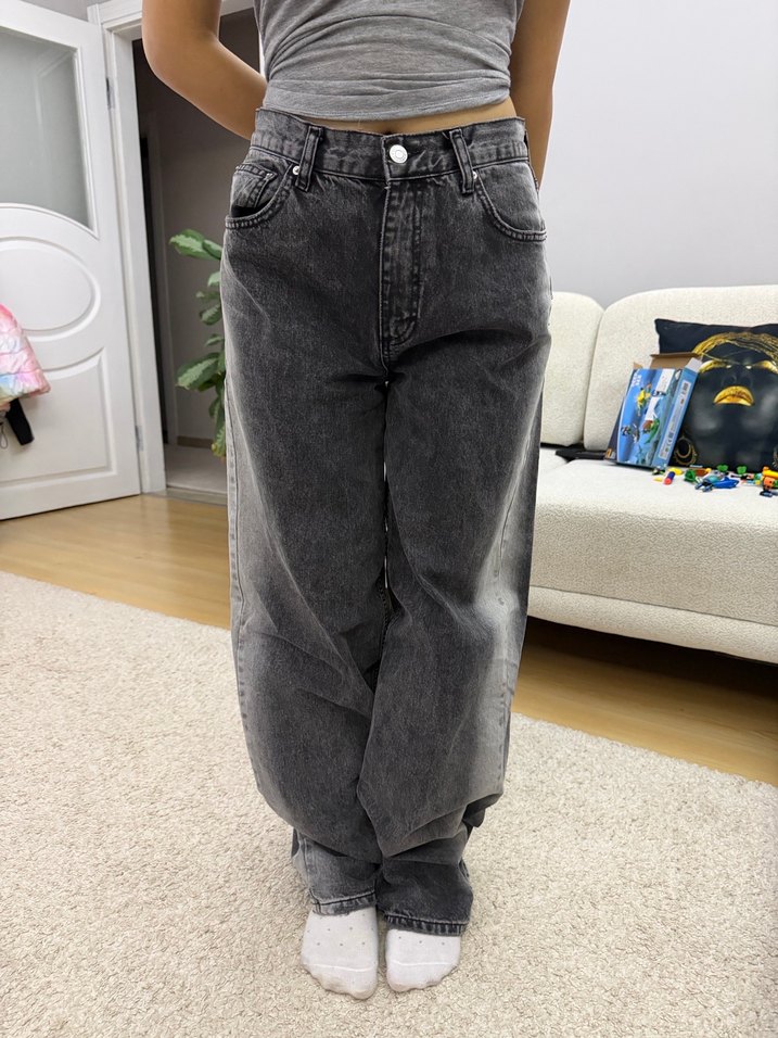 Gri kot pantolon, bol kesim xs s beden günlük kullanıma uygun rahat ve şık bir görünüm sunar. Desensiz yapısıyla trend sokak modasına uyumludur.