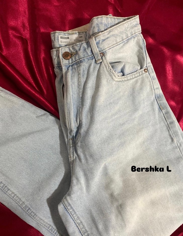 Bershka markalı, bol kesim ve tokalı gri kot pantolon. Rahat ve günlük kullanıma uygun midi uzunluğunda kadın kot pantolonudur. sayili gitilmis mom jean