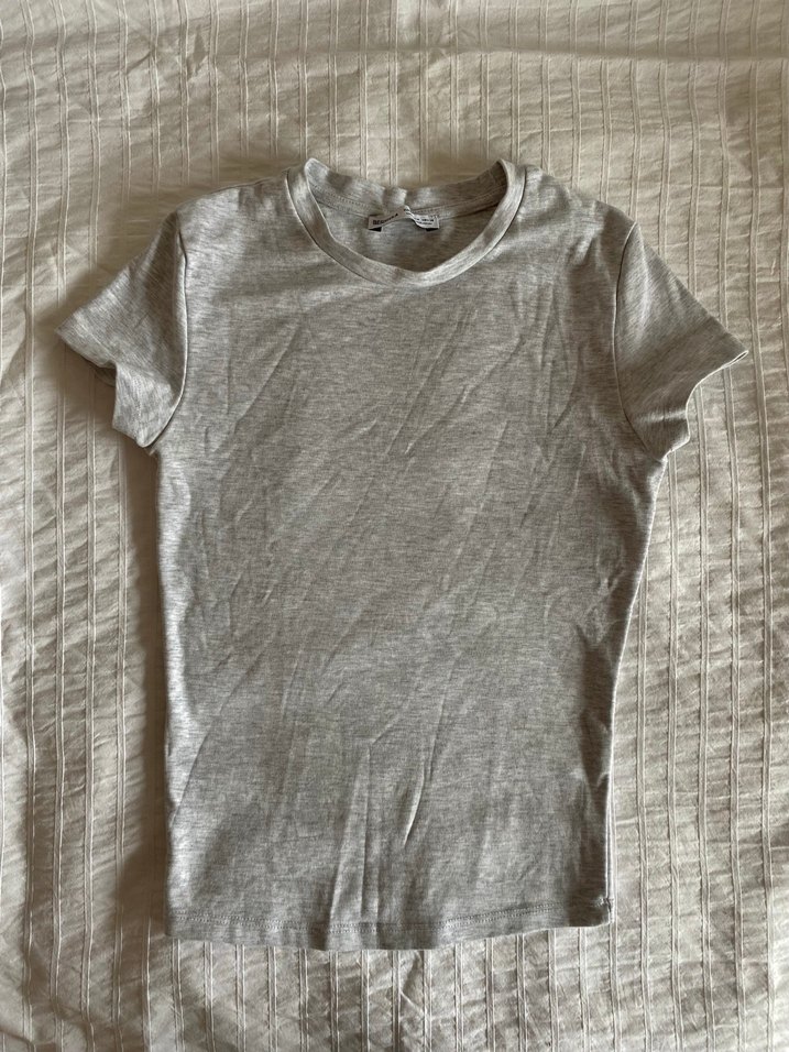 Bershka Gri Kısa Kollu Basic Kadın Tişört