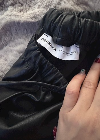 Bershka'nın gri renkte, suni kürk detaylı, kısa ve dar kesim mini eteği. Sokak modasına uygun, şık ve rahat bir parça.