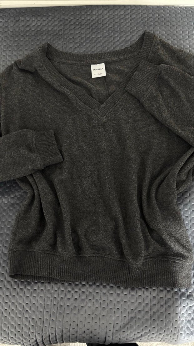 Bershka Gri V Yaka Kadın Triko Kazak