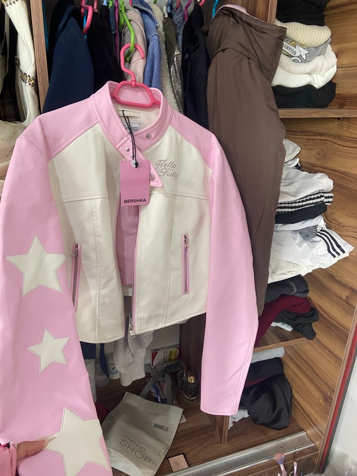 BERSHKA hello kitty Pembe Beyaz Deri Ceket