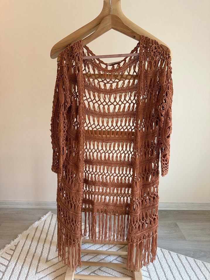 Uzun kiremit rengi örgü hırka. sadece 1 kere giyildi.