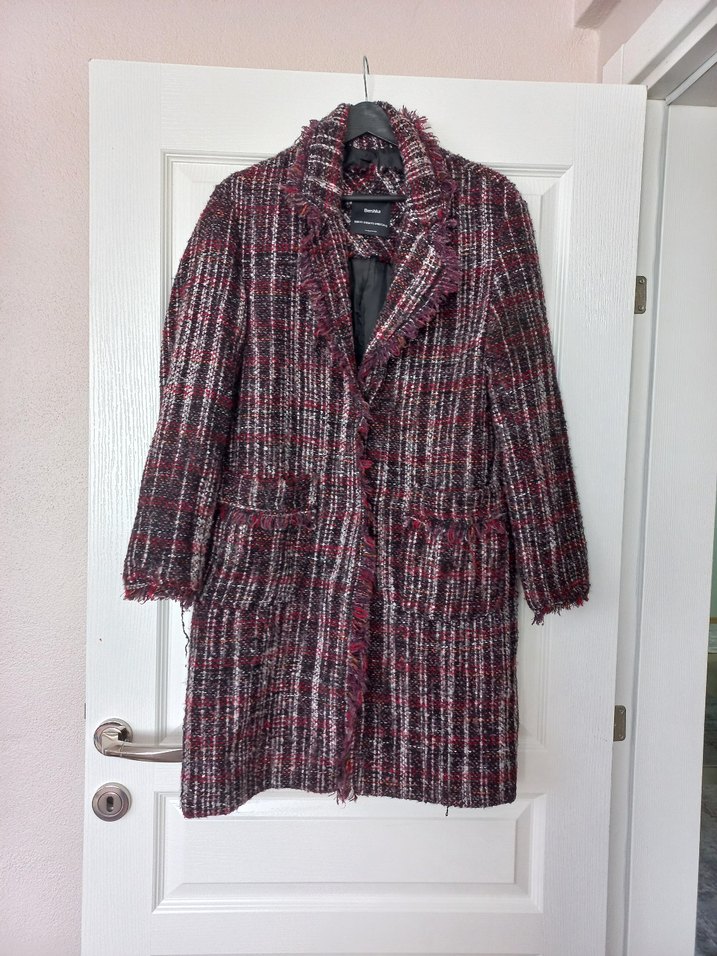 bershka ince, püsküllü kaban. kusuru yok s m bedene uygun Iki omuz arası 47 cm Iki koltuk arası 50 cm Boy 90 cm Kol boyu 56 cm